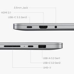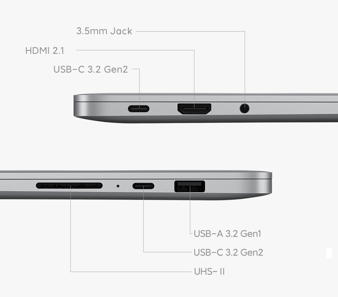 Cet ordinateur portable Xiaomi Redmibook 15 Pro (2023) dispose de 2*2 antennes MIMO doubles, prend en charge le protocole Wi-Fi 6. En outre, il prend en charge Bluetooth 5.2. En ce qui concerne ses connexions, il dispose de ce qui suit :